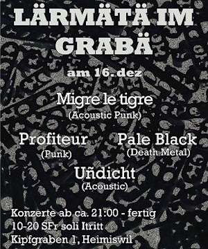 Konzert wurde leider abgesagt. Wir spielen eine Ersatzshow in unserm Bandraum. Plätze stark limitiert, kontaktiert ein Bandmitglied falls ihr dabei sein möchtet.